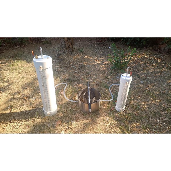 雙環(huán)入滲儀用來測量水滲入土壤的滲透速度,進(jìn)而計(jì)算土壤的垂向滲透系數(shù)的設(shè)備。通過記錄的測量結(jié)果和達(dá)西定律可以計(jì)算出該入滲速率。