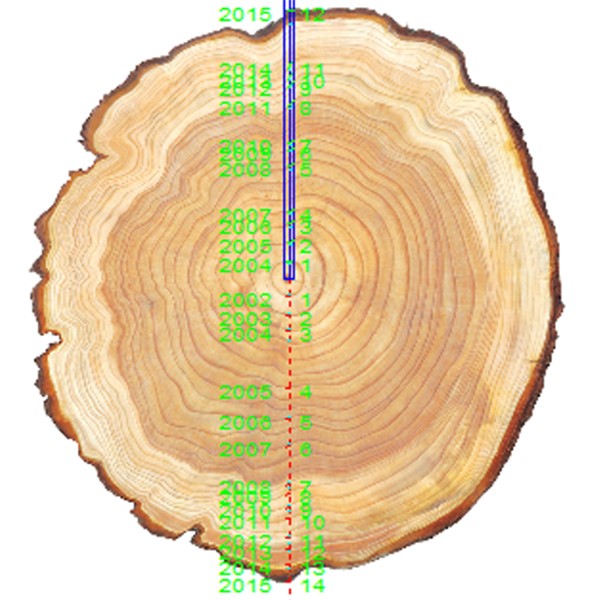 年輪基本參數(shù) | 年輪計(jì)數(shù)、年輪環(huán)寬度、早材/晚材寬度,年輪環(huán)角度 |