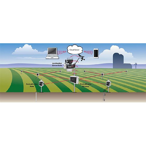 可以根據(jù)不同監(jiān)測范圍來定制整個環(huán)境監(jiān)測系統(tǒng)。每個網(wǎng)關(guān)可以掛載20個以上的節(jié)點。(如有需要)可以在系統(tǒng)中添加多個網(wǎng)關(guān)用來接收其他組節(jié)點傳來的數(shù)據(jù)。另外,DAVIS的GroWeather傳感器組件(ISS)也可以直接連接到網(wǎng)關(guān)上。
