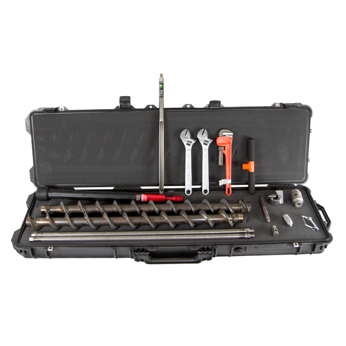 套件組成 | 214.20 - (1) 5/8英寸螺紋外螺紋至 SDS Max 電鉆適配器 409.51 - (2) 3英尺螺紋式延長桿 409.75 - (1) 中空飛輪螺旋鉆切割尖端 409.61 - (1) 中空螺旋鉆頂蓋適配器 409.60 - (2) 3英尺中空螺旋鉆內(nèi)桿 409.58 - (1) 中空螺旋鉆內(nèi)塞 64106 - (1) 帶銷孔的中空桿固定器配件 24390 - (1) 線鎖 U 形夾銷 401.04 - (1) 7/8英寸 X 21英寸土壤探針,帶手柄 421.10 - (2) 12英寸活動(dòng)扳手 14327 - (1) 14英寸管扳手 400.99 - (1) 常規(guī)滑動(dòng)錘 430.01 - (1) 4英尺豪華手提箱 |