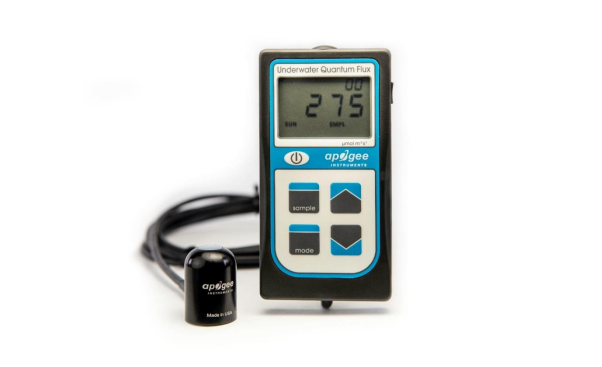 MQ-210X水下光量子計用于測量水下光和MH和HPS燈的強度,并且已經(jīng)通過固件將傳感器的浸入效應校正因子應用于儀表讀數(shù)。該儀表非常適合在陽光、金屬鹵化燈和高壓鈉燈下精確測量PAR,這些光源需要應用測量后校正因子以獲取準確的讀數(shù)。MQ210X由一個手持儀表和專用量子傳感器組成,該傳感器通過電纜連接到陽極氧化鋁外殼。防水傳感器結合了藍色增強型硅光電二極管和定制的光學濾光片,以及堅固耐用的陽極氧化鋁制主體和丙烯酸擴散器。水下量子傳感器通常用于珊瑚生長的海水水族館??梢詾镸Q-210X選配AL-100不銹鋼調(diào)平支架,以確保傳感器在連接到橫臂時保持水平。